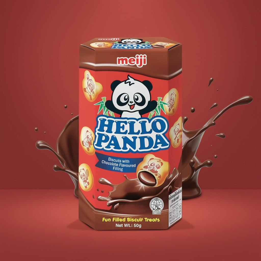 Meiji Hello Panda Chocolat est un biscuit japonais gourmand au cœur fondant de crème chocolat. Ses petites coques dorées et croustillantes sont décorées de pandas adorables, ce qui en fait un snack fun et délicieux à déguster à tout moment de la journée. Parfait pour les amateurs de biscuits fourrés et de confiseries japonaises !