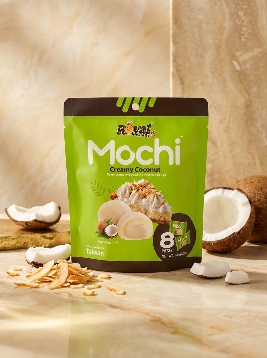 Mochi Coconuts – Royal Family est une douceur moelleuse à base de riz gluant, garnie d’une crème fondante à la noix de coco. Avec sa texture tendre et sa saveur exotique, ce mochi offre une pause sucrée originale qui marie la tradition japonaise à des notes tropicales délicates. Parfait pour les amateurs de saveurs fruitées et gourmandes.